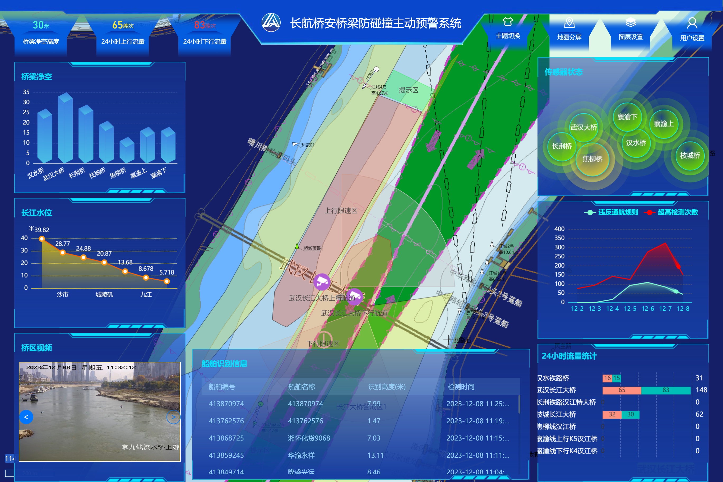 截至2023年,长江干线武汉段已有7座桥梁安装运行主动防撞预警系统,实现了长江中下游最大“桥群”的主动防撞预警系统全覆盖。这意味着在这片繁忙的水域之上,一座座桥梁都拥有了自己的“智能守护者”,全天候守护着桥梁与航道的安全。
