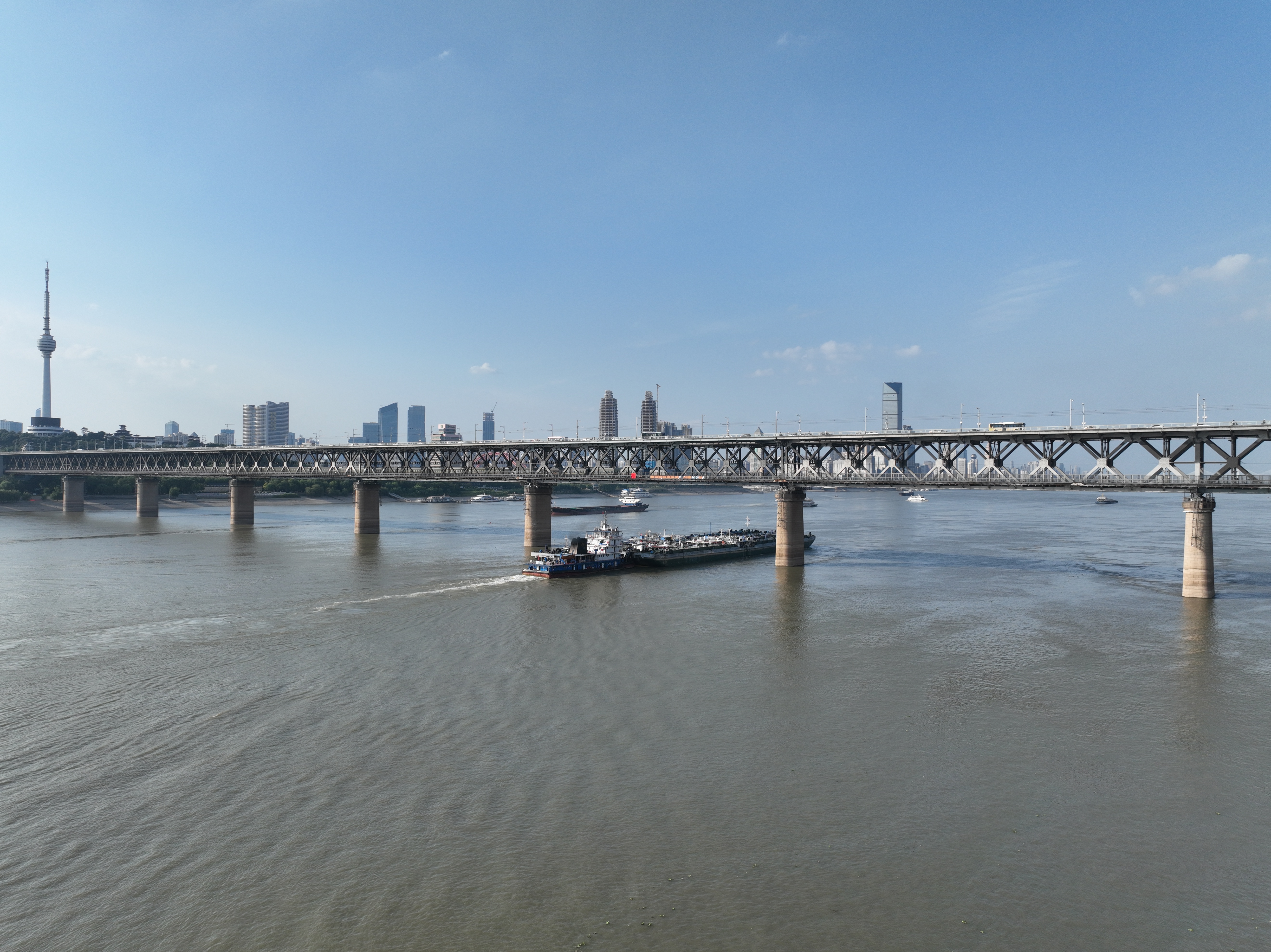 被称为“万里长江第一桥”的武汉长江大桥,是中国建造的首座公铁两用横跨长江的钢梁桥。该桥上层为公路桥,下层为双线铁路桥,主桥总长1156米,采用八墩九孔设计,桥墩之间的通航净宽是110米。