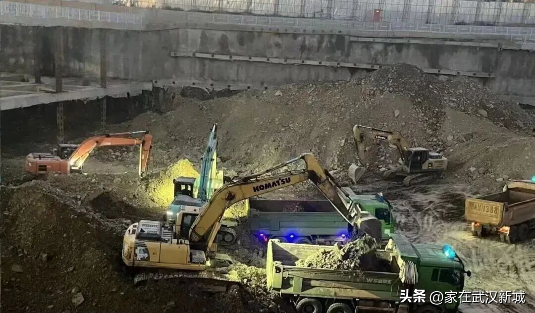 土方:西半区第三层土方开挖中,受国家生态环保部进驻武汉巡查影响本周无法大批量出土,为尽快移交总包作业面, 24小时加班进行西南支撑区域土方开挖内倒。