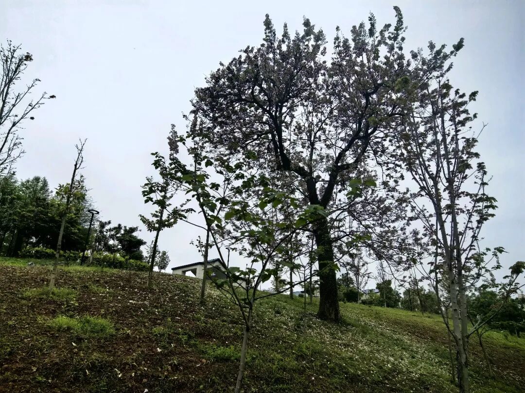 其实在往公园这边走的时候,我已经看到了公园坡地上的两颗泡桐花,当时心底就微凉,等我走到了公园的最高观景台,四处打量一番,心彻底凉了!