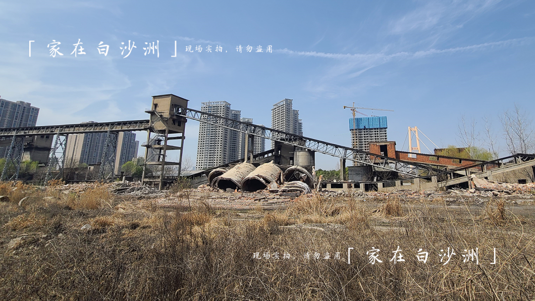 从汉阳方向驶入白沙洲,杨泗港桥头堡两侧是大片的低矮仓库,继续往前则是几处的工业遗址。