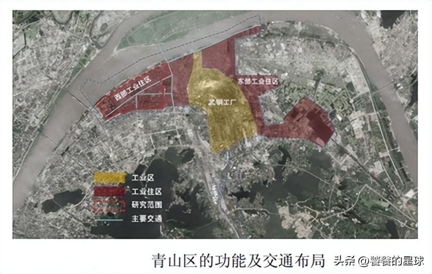 武汉市青山区北邻长江,有码头水运等交通优势;位于城市的近郊区,具有宽广的用地面积,所以武钢选址青山。从此青山区成了华中地区最大的钢铁基地。