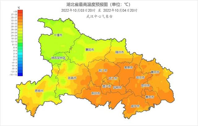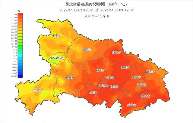 10月2号到3号,湖北省最高气温局部达38℃