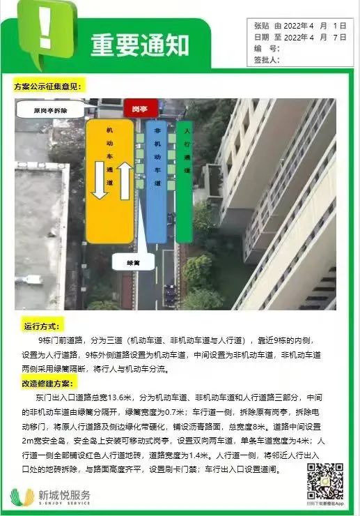 其次,小区东门拓宽的讨论和研究早已有之,2022年物业曾安排过一次全员跑票,该方案与本次方案稍有区别,将东门拓宽后改为双向进出,同时还拓宽了非机动车道与步行道,当时得到了小区超3分之2人数赞同。