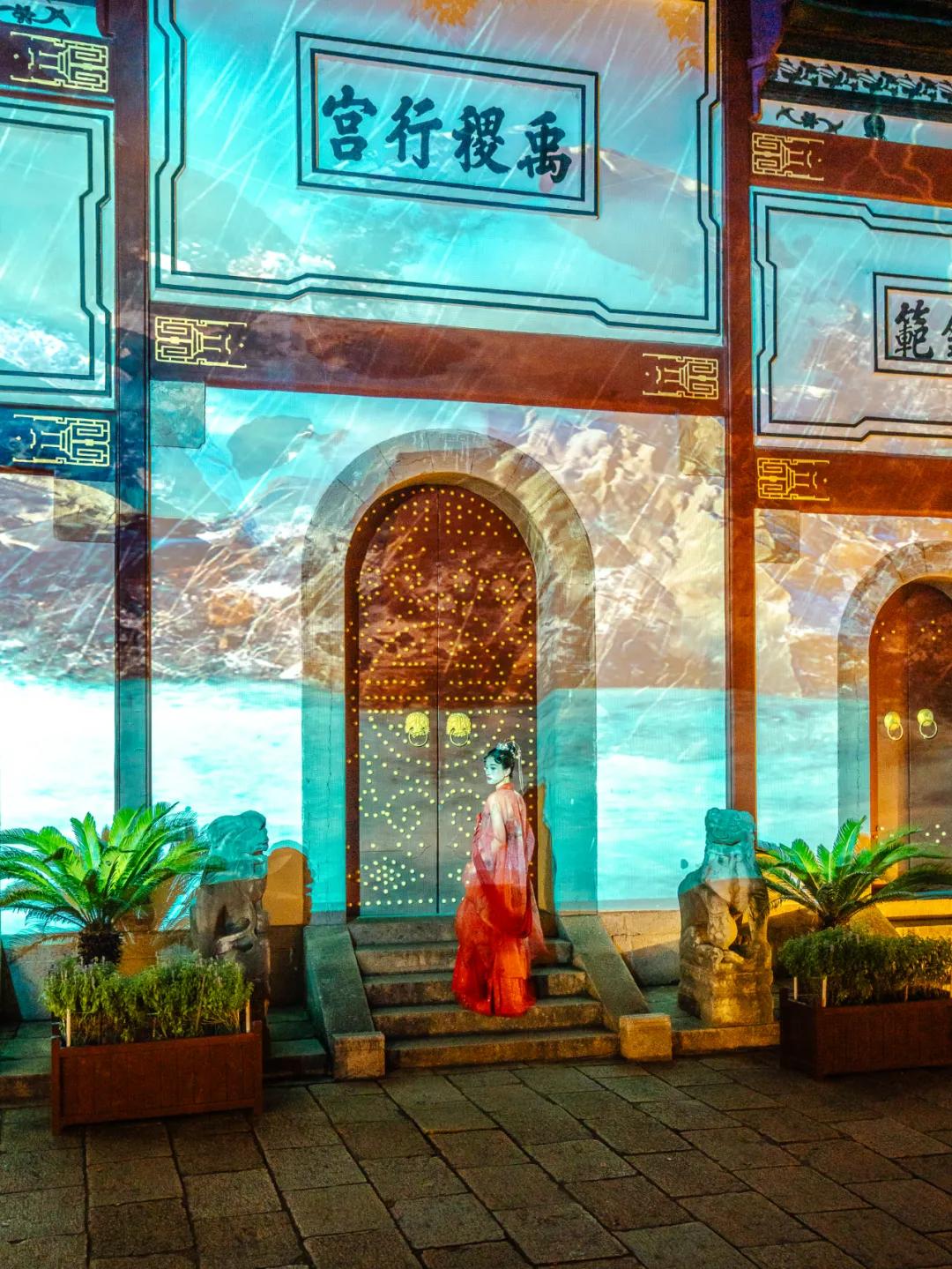 推开时间穿梭的门,做一场穿越古今的梦。在晴川阁,春节期间,夜游晴川阁安排有《大禹晴川情》实景木偶剧、乐器独奏、古典舞、喷火、变脸、鱼灯舞、皮影戏等非遗表演。“诗韵月色”大禹文化周非遗市集设置了拓印、手工灯笼、猜灯谜等非遗民俗体验活动,以及传统手工艺品、特色小吃。还有“华彩霓裳,古韵新春”晴川阁新春汉服活动,让各地游客在汉阳逛归元庙会、赏晴川胜景、看大禹非遗。