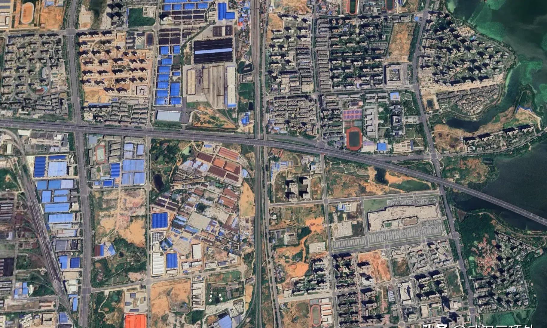 我特地去查了下卫星地图,才发现问题所在。黄陂盘龙城和汉口主城区之间,隔着府河,加上两岸大片的生态保护区,形成了一道差不多2公里宽的“无人地带”。