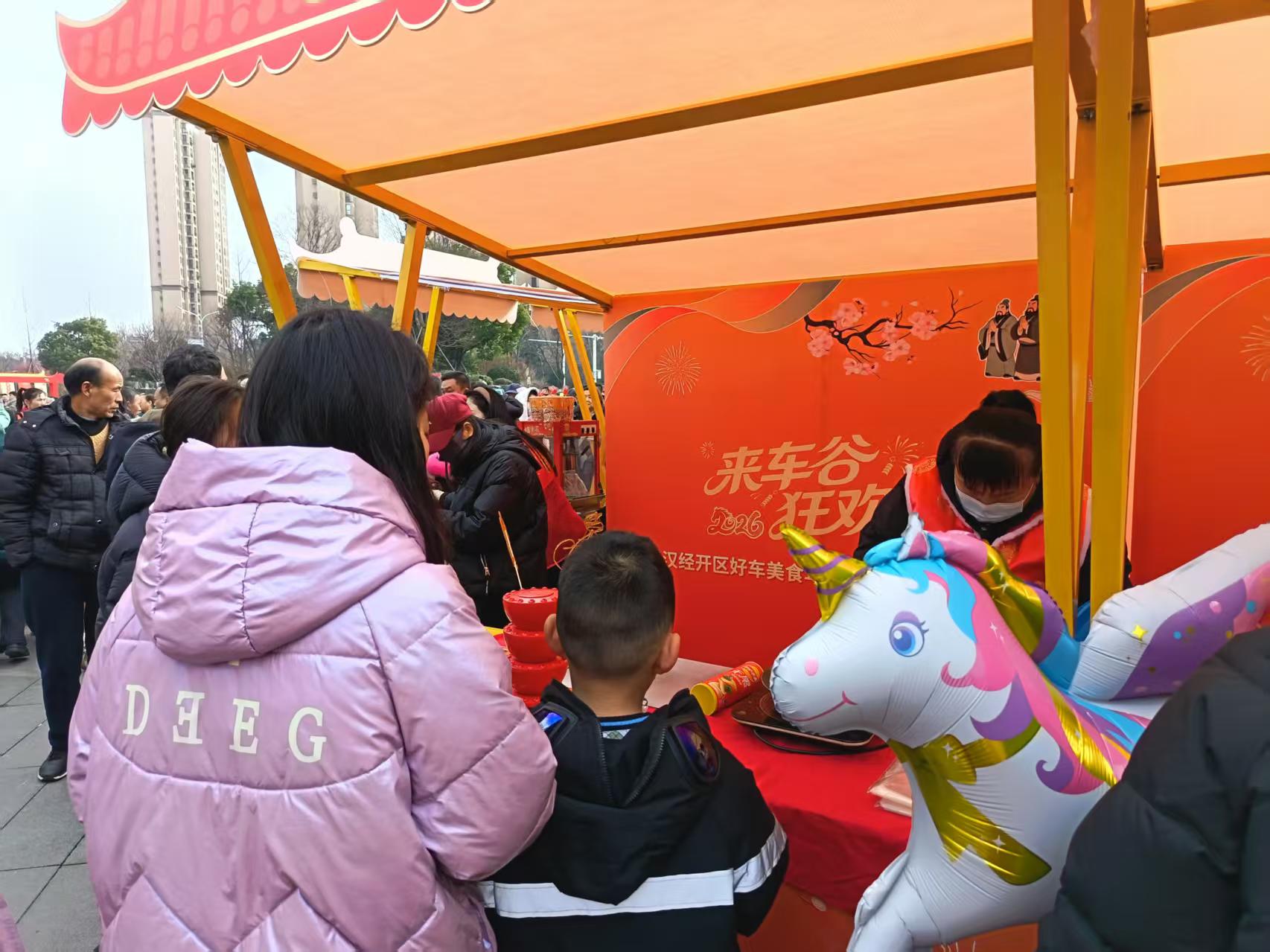 2026武汉经开区好车美食年俗年货消费季军山专场活动打破传统单一展示模式,设置了汽车、美食、年俗、童趣、便民五大主题集市,将“车谷造”汽车巡展与年俗、非遗等场景深度融合,实现“看车、赏非遗、囤年货、玩亲子、品美食”一站式体验。