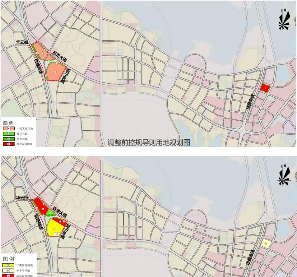 将盘龙城经济技术开发区内华云街、巨龙大道、露甲山路、机场高速所围合范围,约65公顷总用地调整为商业设施用地、商务用地、居住用地、小学用地、公园绿地,并结合华云街、航城大道与机场高速立交的具体方案优化道路红线。