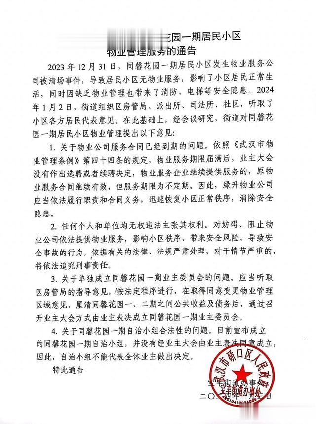 此外,2024年3月1日,硚北社区居委会发布了一则《通告》: