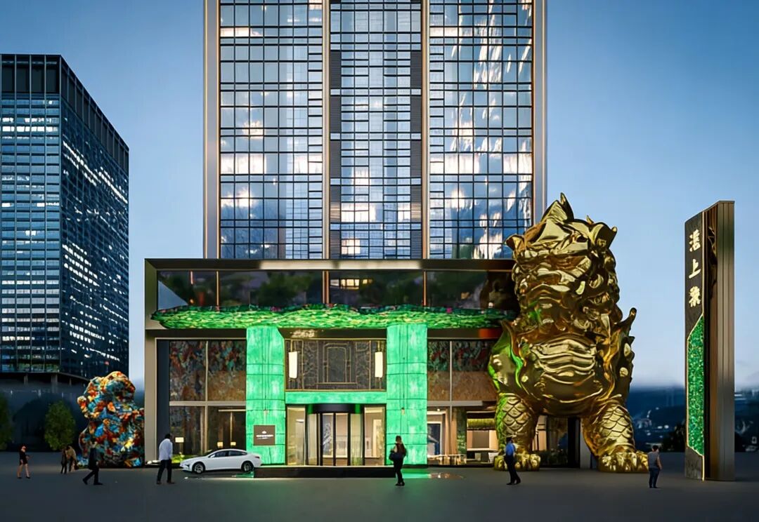20米高的金色麒狮。效果图