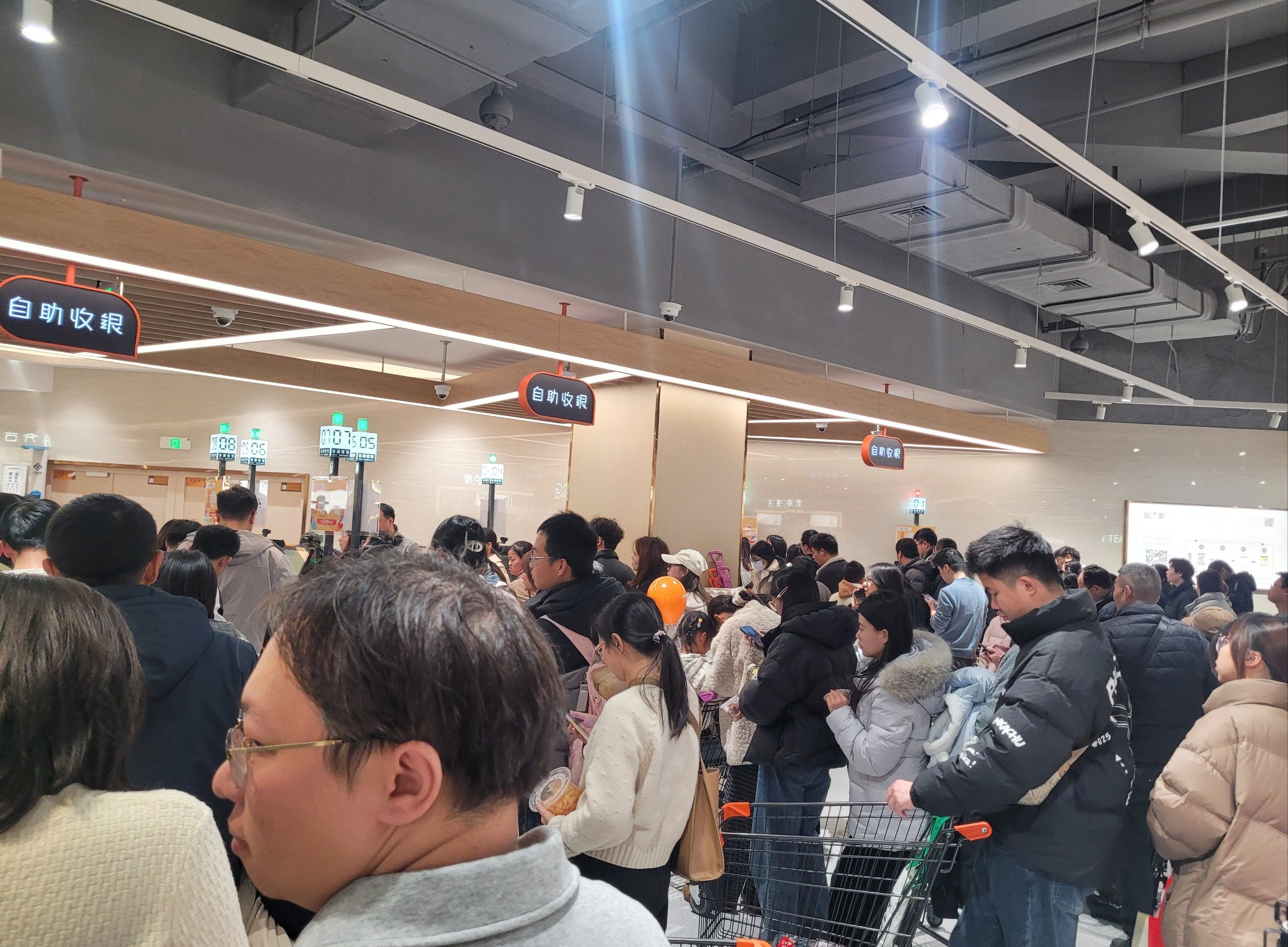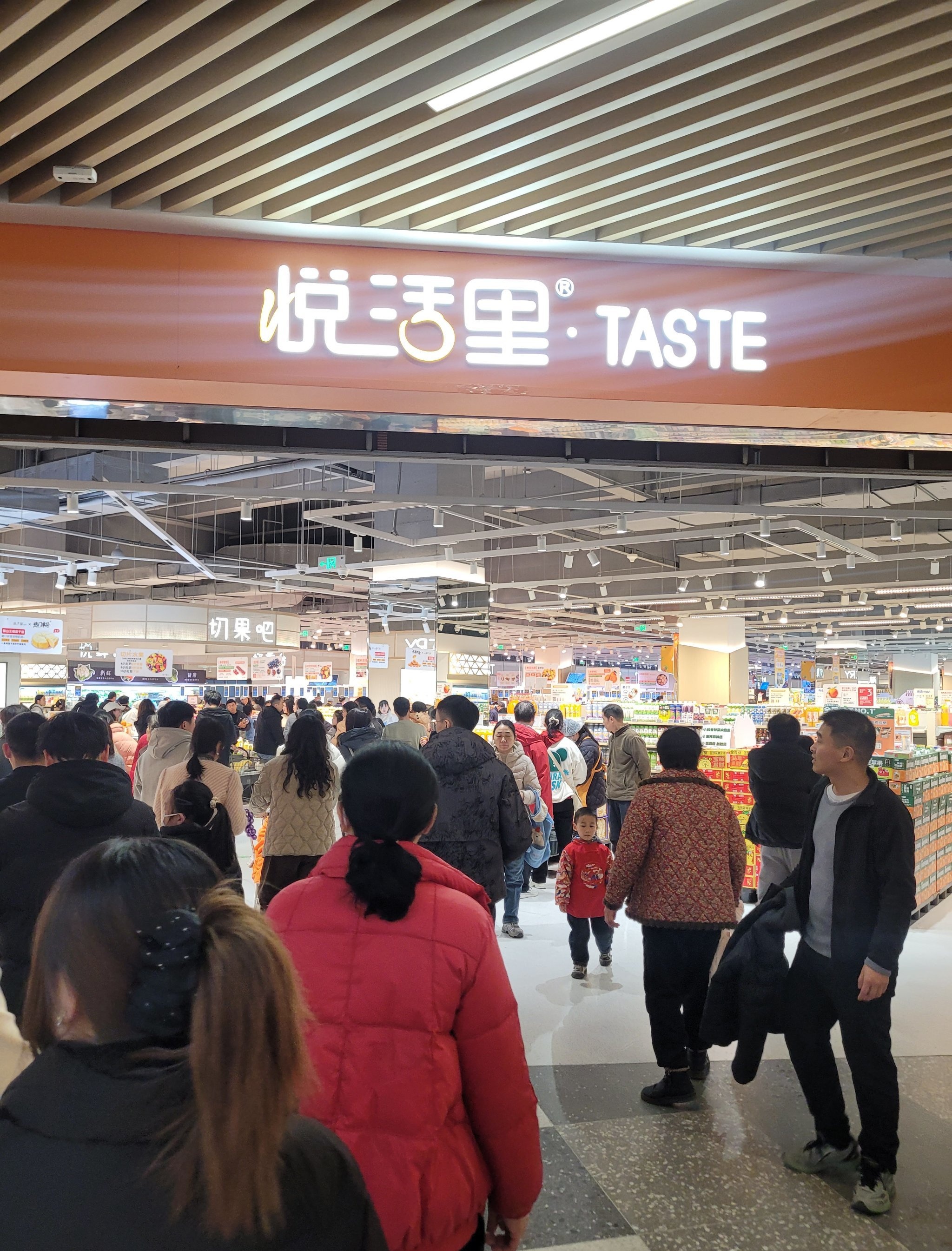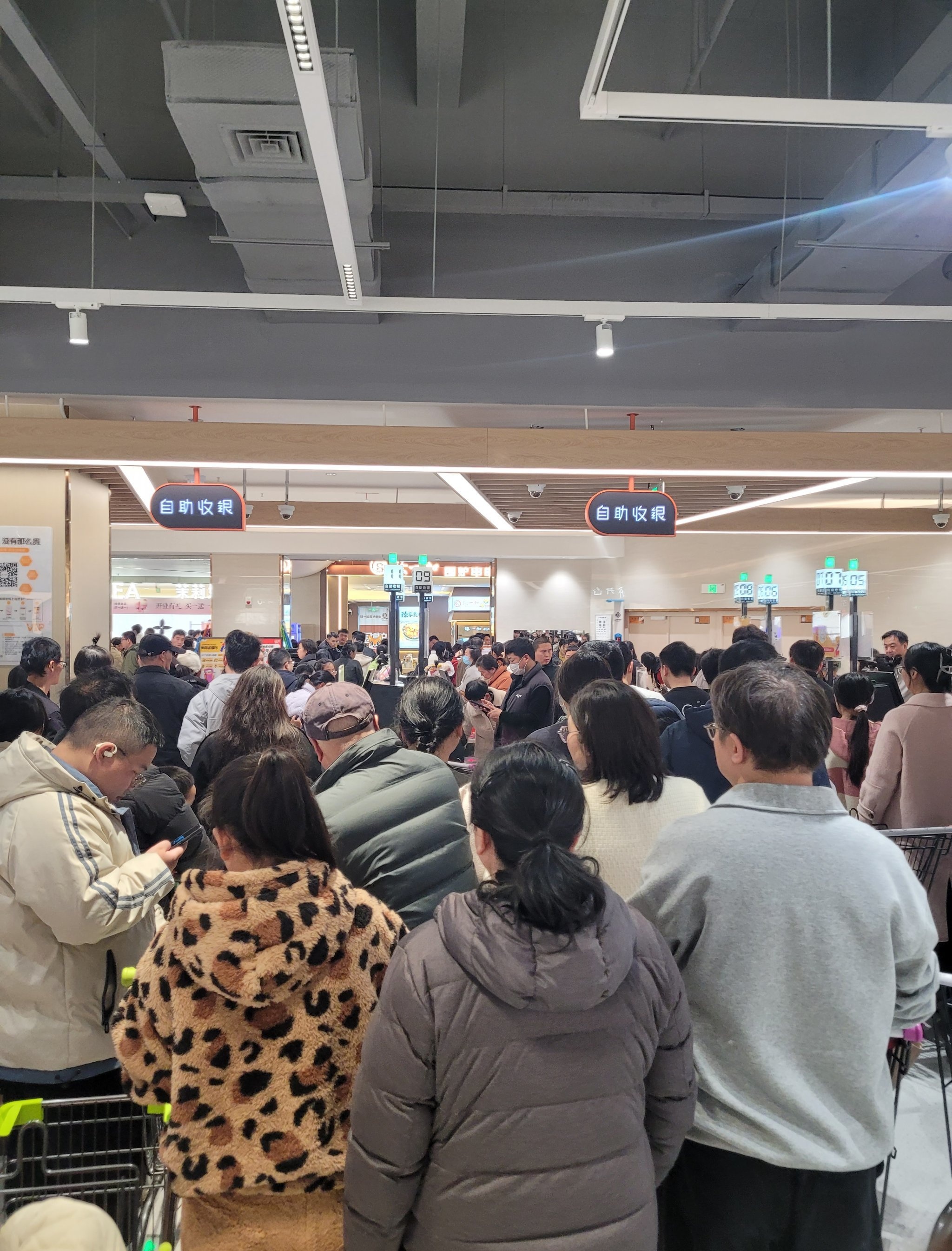 光谷南的星悦广场已经开业10天了,想着人流量会不会比开业时少一点,顺便去负一楼的悦活里超市买点熟食和水果。结果这人流量彻底让我崩溃!!!完全是人挤人模式,挤得水泄不通,前胸贴后背。好不容易选好东西准备结账,排队就足足排了半个多小时(最后一张图)。