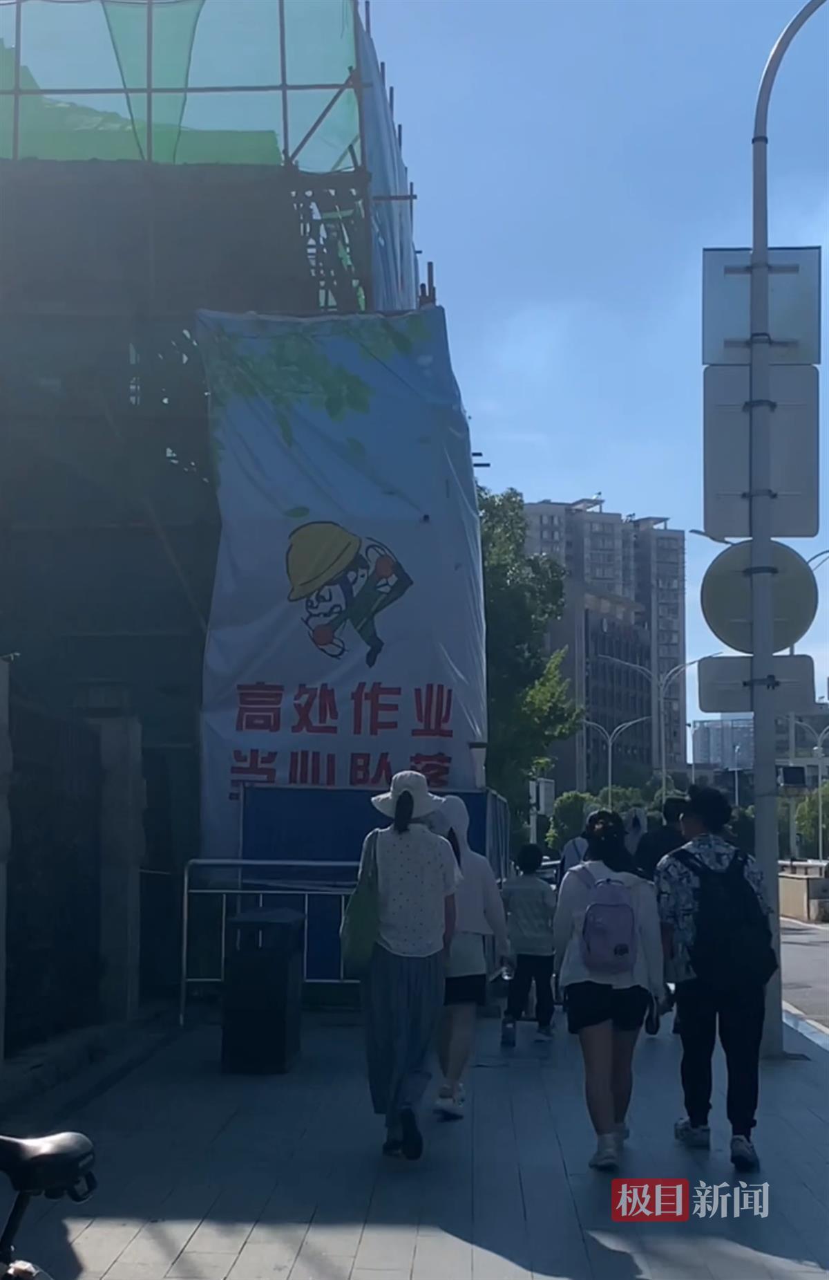 7月23日,湖北省博物馆东门迎来提升城市形象的改造工程。记者在现场看到,一座三层楼高的脚手架巍然矗立,将原有的门亭紧紧包围。脚手架之上,“高处作业,当心坠落”的红色警示标语格外醒目,时刻提醒着施工人员与过往行人注意安全。