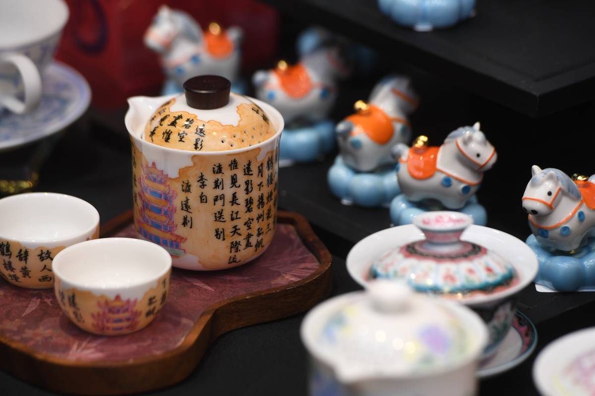 在三联广场,“楚国礼物”新春快闪店正在布展。展台上,黑檀木熏香、莲花白瓷杯、木簪等荆楚风格文创产品整齐陈列,兼具实用性与文化韵味。特别引人注目的是几款原创IP衍生品:迷你勾践剑U盘、黄鹤楼毛绒“捏捏”玩偶,以及专为本次庙会设计的吉祥物“松崽”——一个头发形似松果、背着小龙虾的呆萌形象。品牌创始人杨清表示:“希望通过更年轻化、趣味化的方式,让楚文化走近年轻人和外地游客。”