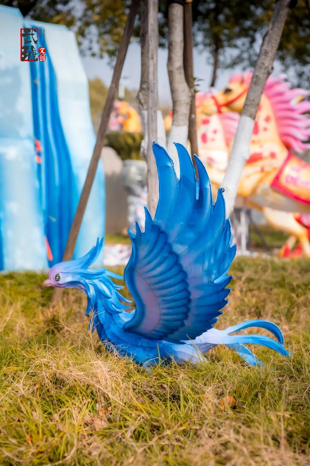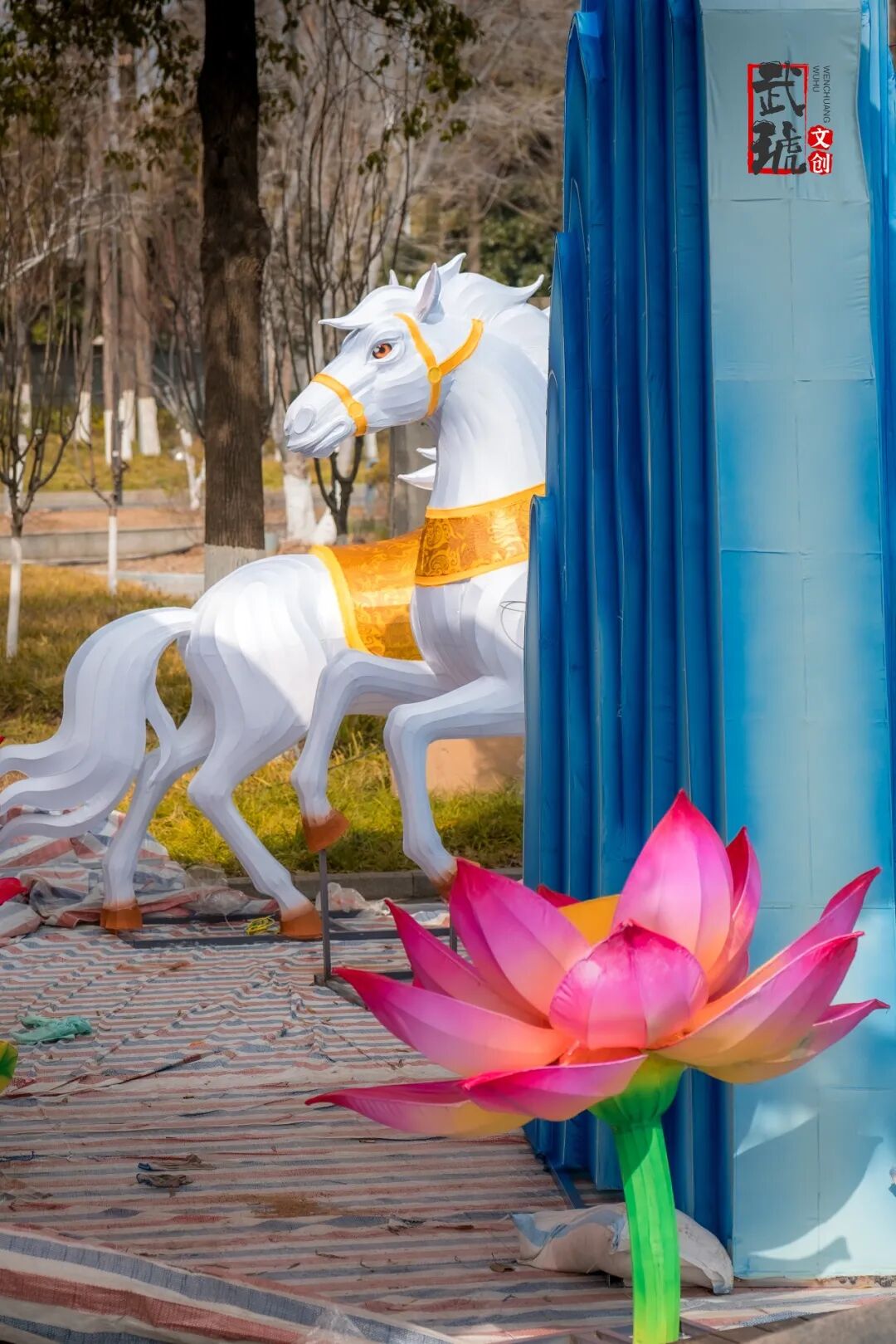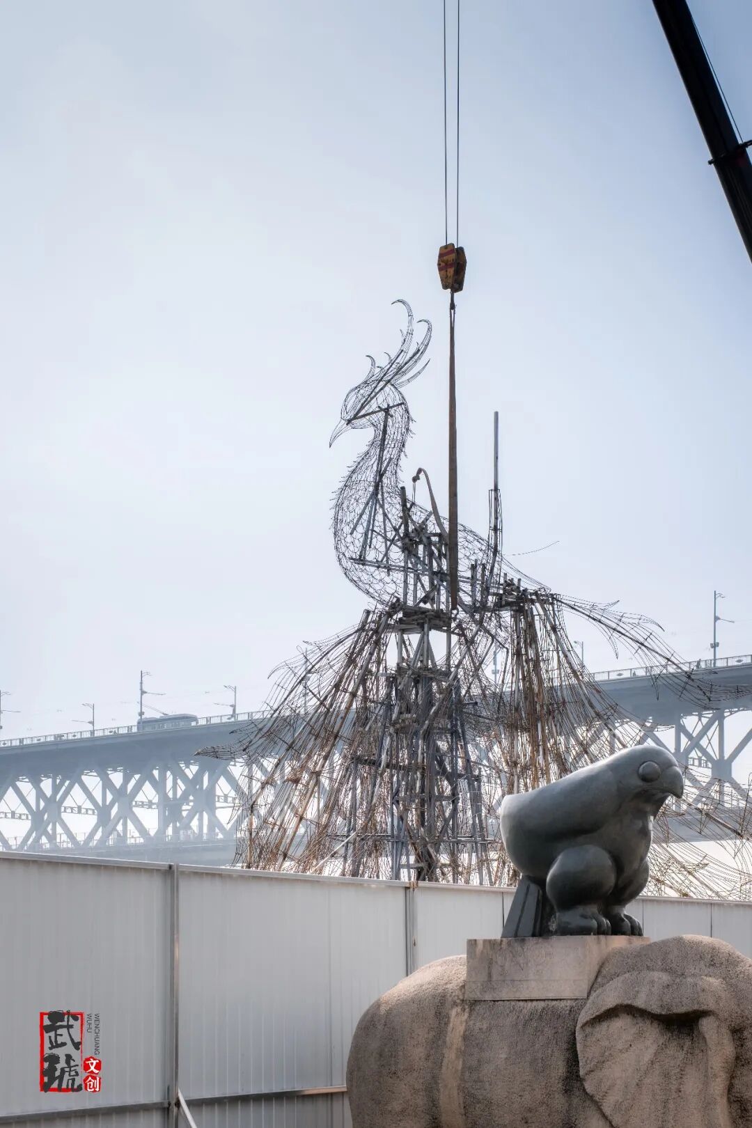 位于大禹治水图浮雕对面、仍在搭建中的“凤舞九天”灯组
