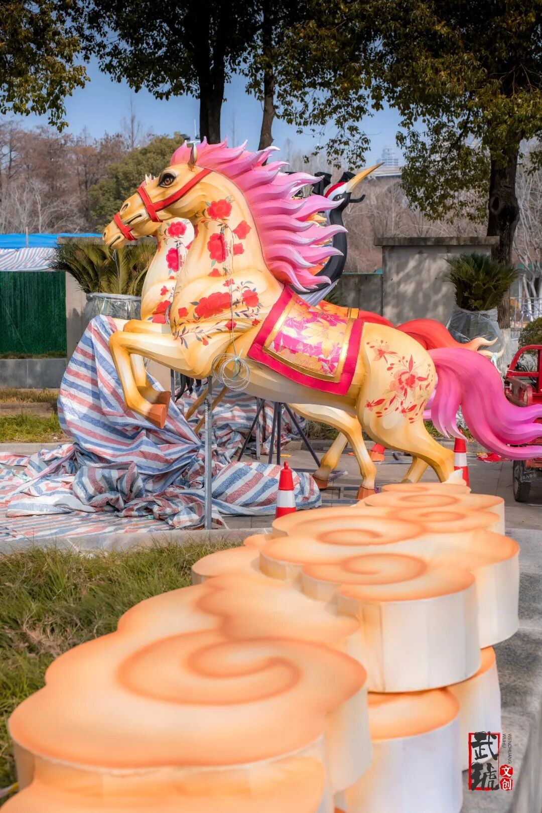 2月1日,笔者在汉阳江滩内实地探访。部分大小型灯组已经搭建完成;仍有很多灯组还在紧张搭建中,相信搭建完成亮灯后,会带来绝佳的视觉效果。