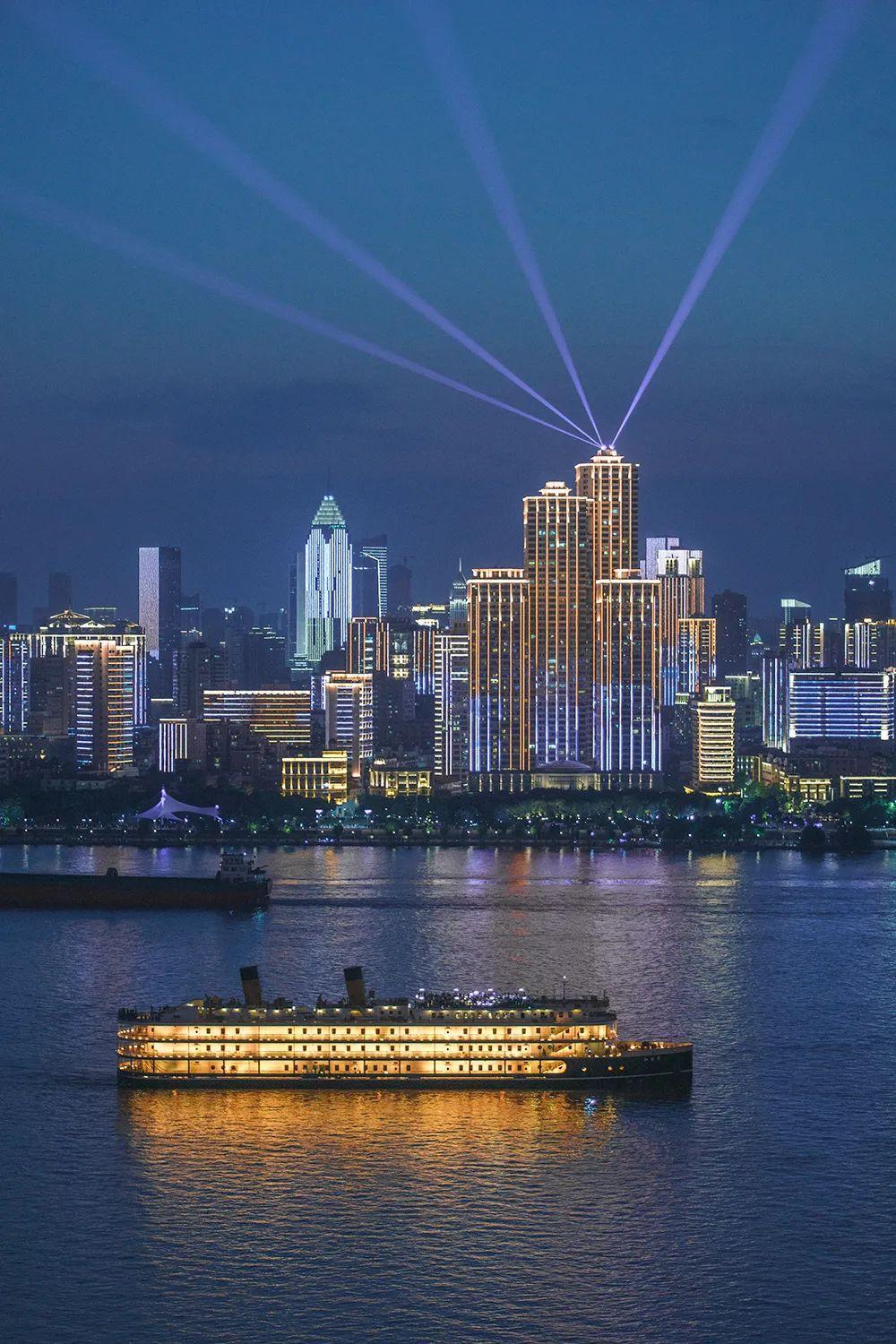 仲夏时节没有什么比吹一吹江城的晚风更让人惬意的事情了当夏夜邂逅烂漫星辉之时登上“知音号”甲板在这座移动的长江观景台之上品两江四岸美景赏25公里长江灯光秀以星辰与月色为伴将大武汉的曼妙尽收眼底